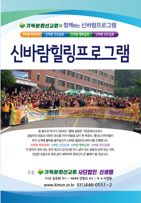 고(故) 황수관 박사가 2004년 1월 설립한 기독문화선교회는 그동안 ‘신바람’이라는 문화선교 브랜드를 중심으로 말씀과 찬양, 간증과 전도를 결합한 복합 문화 집회를 전국적으로 펼쳐왔다.